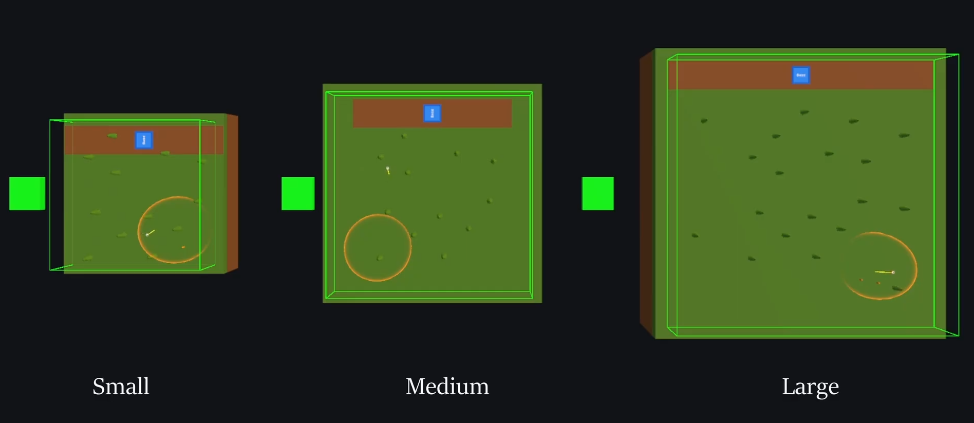 In previous training, I only trained on one map, which is the small one. This made the agent generalise the environment and become too uncomfortable, which makes the agent only know how to do the tasks in this one environment. I want it so the agent can scale well to many different environments no matter the size.